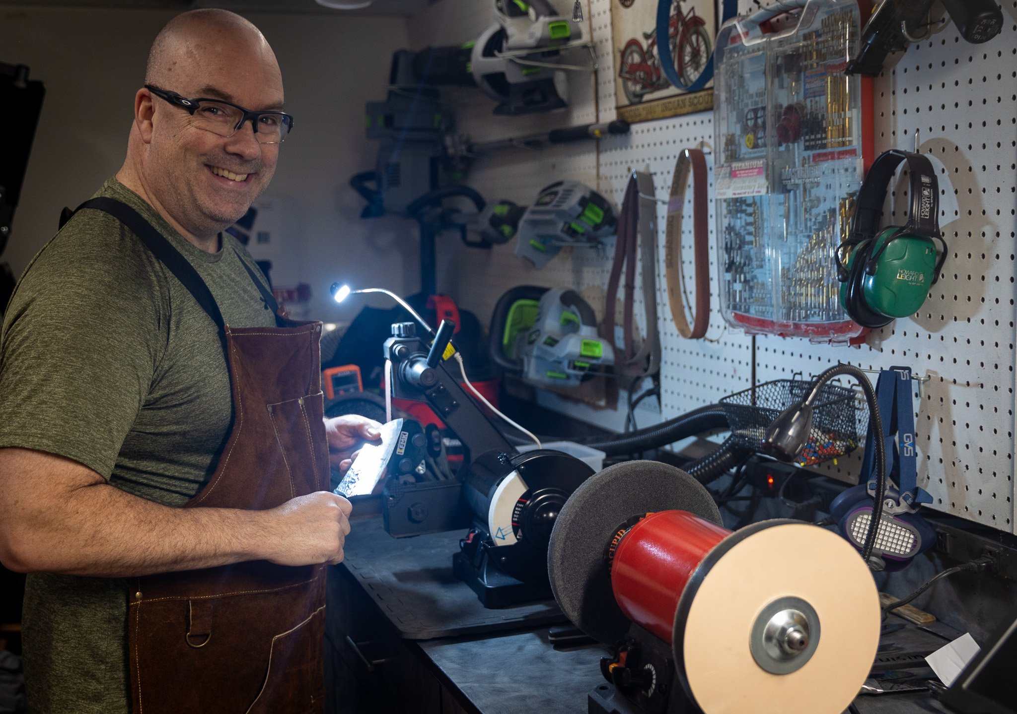 I use precise angles, typically 17 degrees since that gives you a very sharp edge with some durability. Axes, hatchets, cleavers and some machetes I will sharpen at 25 degrees. I also do a lot of repair work and clean up work on your blades and handles usually without extra cost unless there is significant damage or corrosion.